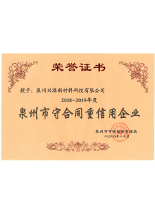 2018-2019年度泉州守合同重信用企業(yè)